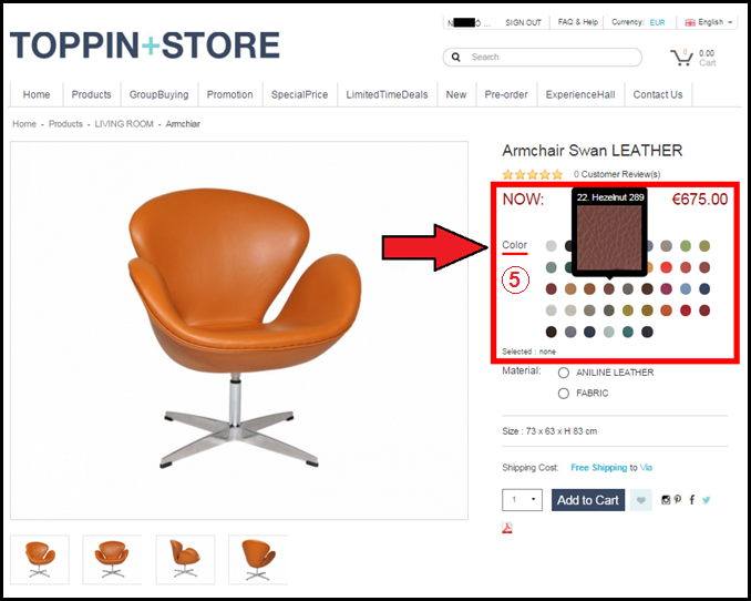 4. Example: I choose a armchair that is located in the section PRODUCTS category LOUNGE.
