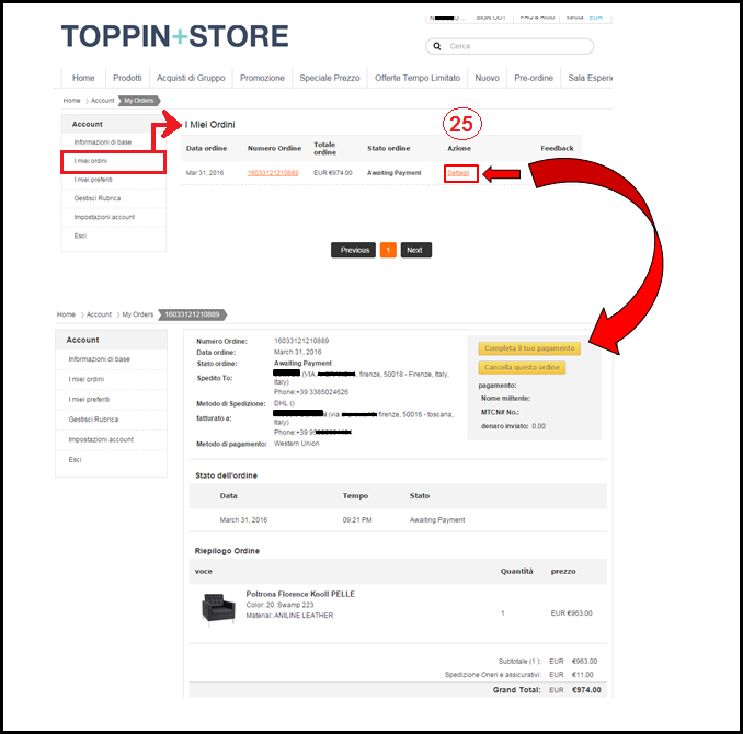 25. Nella sezione “I miei ordini” possiamo vedere i dettagli di quello che abbiamo ordinato e pagato.